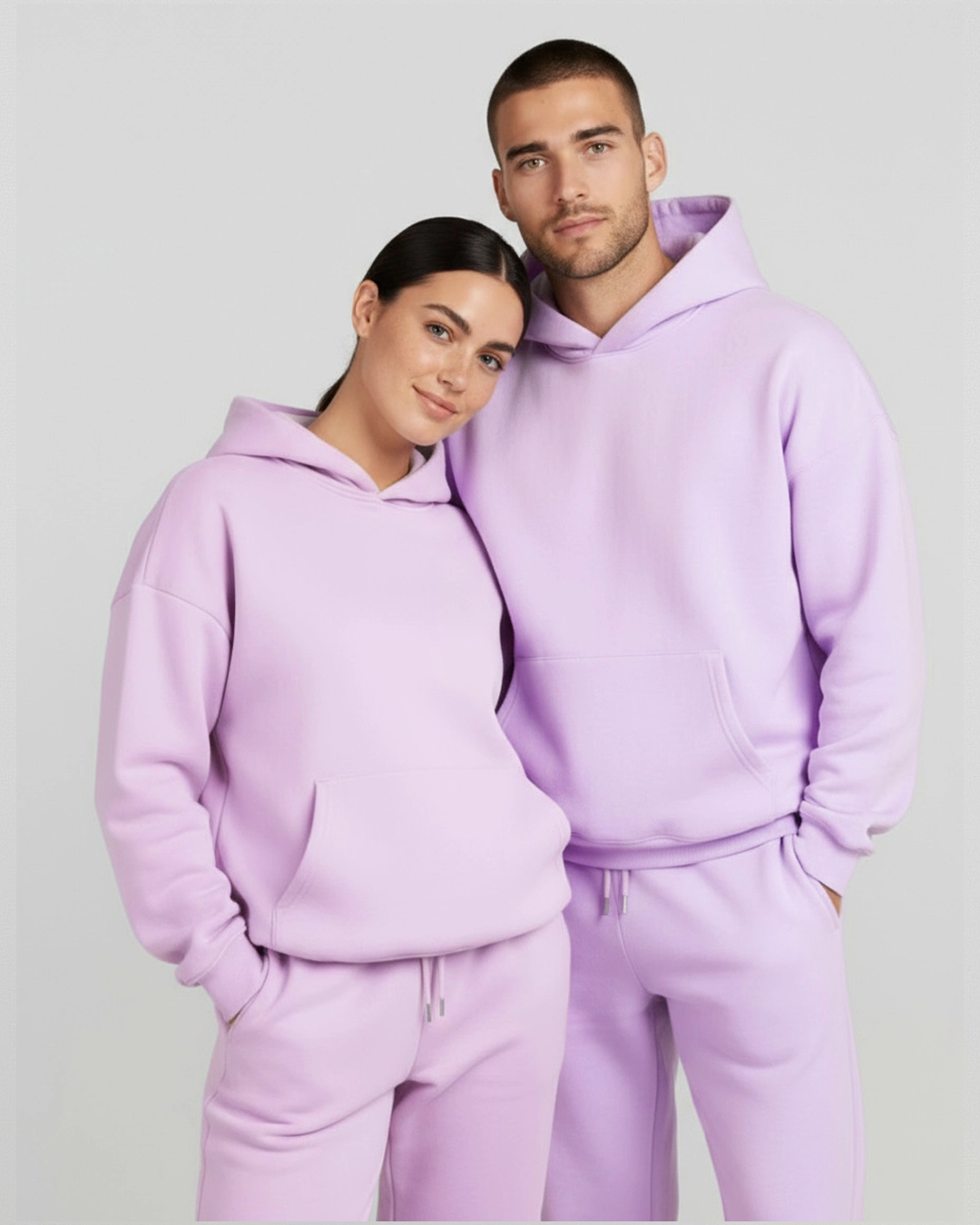 We’ve upgraded our set with heavyweight 410 GSM French terry cotton for a more substantial, premium feel. The hoodie boasts a relaxed drop-shoulder fit, while the joggers feature welt hand pockets and elasticized ankle cuffs for comfort and style. Perfect for cooler weather, this heavyweight set blends durability with a sleek, elevated look.
