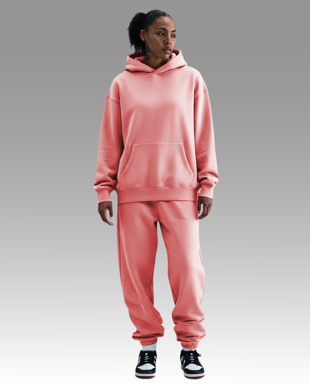 We’ve upgraded our set with heavyweight 410 GSM French terry cotton for a more substantial, premium feel. The hoodie boasts a relaxed drop-shoulder fit, while the joggers feature welt hand pockets and elasticized ankle cuffs for comfort and style. Perfect for cooler weather, this heavyweight set blends durability with a sleek, elevated look.